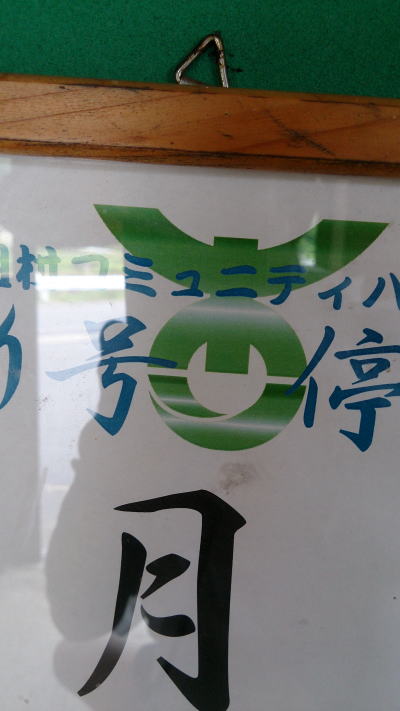 中山道からもはなれ、五月日という名前のバス停でパンを食べる。バスは1、2時間に1本しかこないので安心。 ななお、木祖村のマークは旧下呂町のマークににてると思いませんか?(下呂町出身者へ限定の問いかけf(^^;)